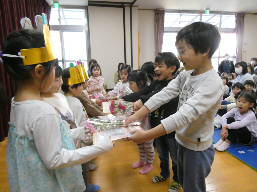 お友だちから花束と誕生カードのプレゼントをもらってはとても嬉しそうな表情が印象的でした