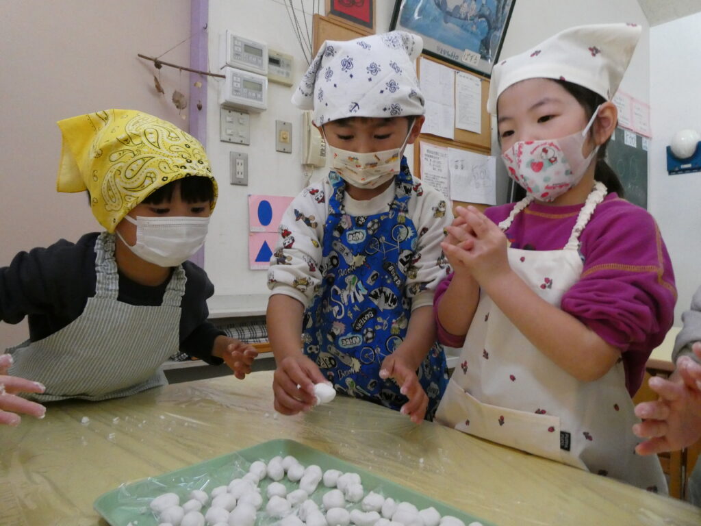 4・5歳児がまゆ団子作りをしました😊