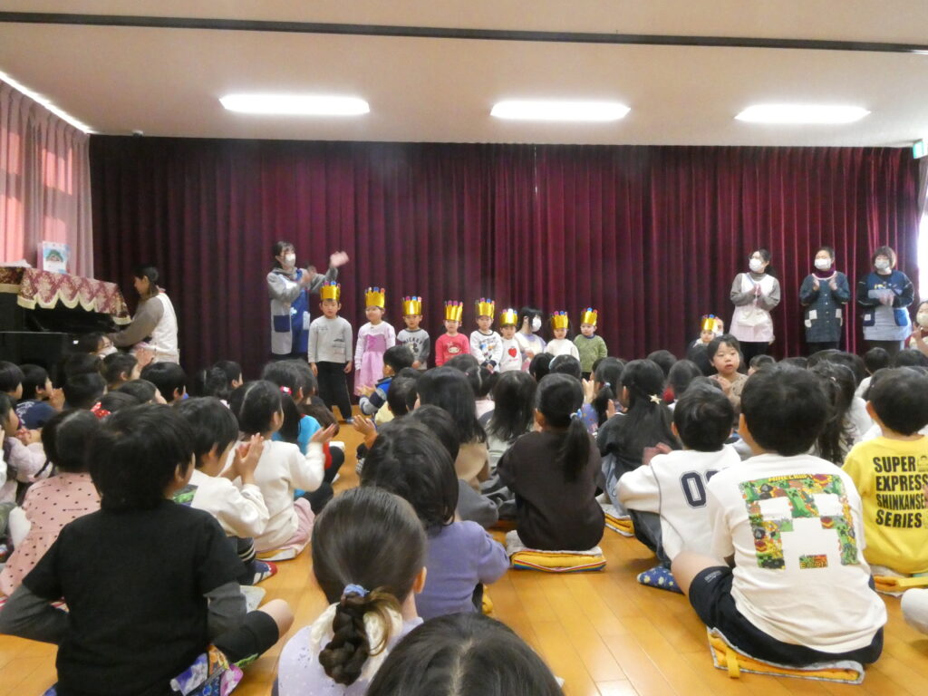 今月のお楽しみは、年長児が合唱を披露してくれました🎶年長児の迫力のある歌声が会場に響き渡り、